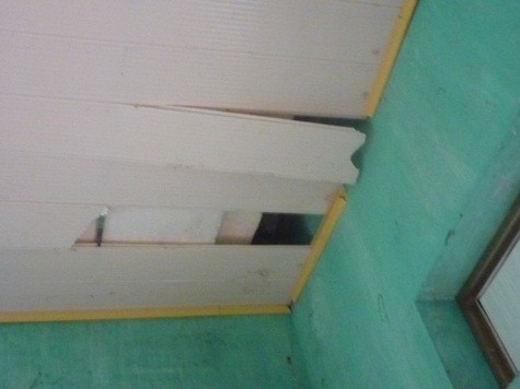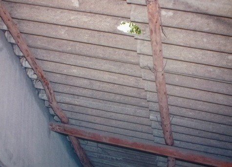 Đá bay vào nhà làm sụt trần nhà.