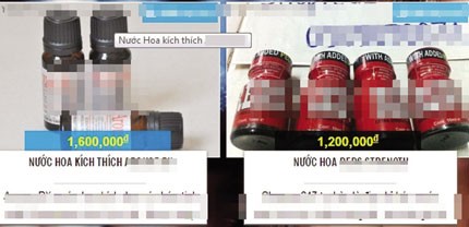 Các loại nước hoa được cho là “kích thích ham muốn” đang được rao bán rầm rộ trên các trang mạng xã hội với giá bán từ 700.000 đồng đến 1,5 triệu đồng/lọ. Tất cả đều được quảng cáo với những mỹ từ rất lôi cuốn như: “Chỉ cần hít phải mùi hương là bất cứ em gái nào cũng sẽ bị kích thích và sẵn sàng trao thân. Cách sử dụng lại rất đơn giản, chỉ cần xịt vào phía đối phương và sau khi họ hít vào thì ham muốn sẽ trỗi dậy”.