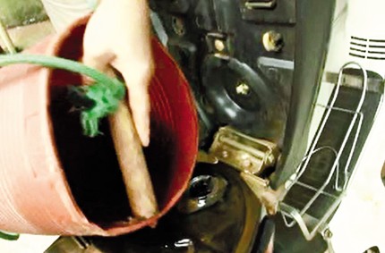 Xăng múc từ giếng lên đổ vào xe máy chạy bình thường.