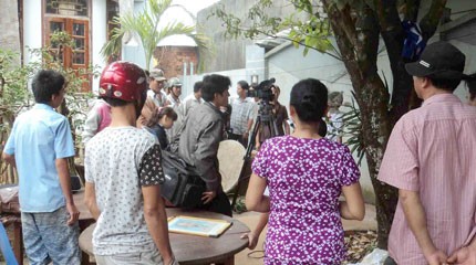 Người dân hiếu kỳ tụ tập nhà bà Ngãi để xem múc xăng từ giếng lên. Ảnh: A.V.