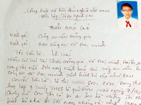 Đơn tố cáo gia đình cháu Vân gửi tới cơ quan chức năng