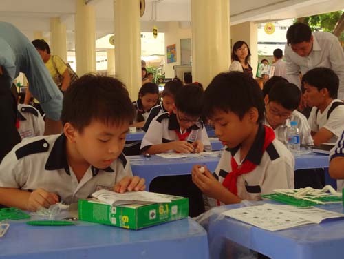 Sáng 20.10, Trung tâm Tiết kiệm năng lượng TP.HCM (ECC-HCM) phối hợp với Trường tiểu học Nguyễn Bỉnh Khiêm (Q.1, TP.HCM) tổ chức cuộc thi Lắp ráp mô hình năng lượng mặt trời dành cho học sinh tiểu học (ảnh).