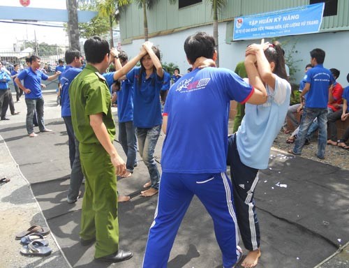 Những chiêu thức thoát thân trong trường hợp gặp nguy hiểm đã được thanh niên lực lượng vũ trang truyền đạt cho sinh viên học sinh.
