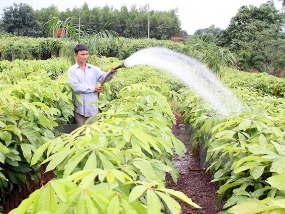 Chăm sóc cây giống phục vụ kế hoạch trồng rừng. (Ảnh: Quang Quyết/TTXVN)
