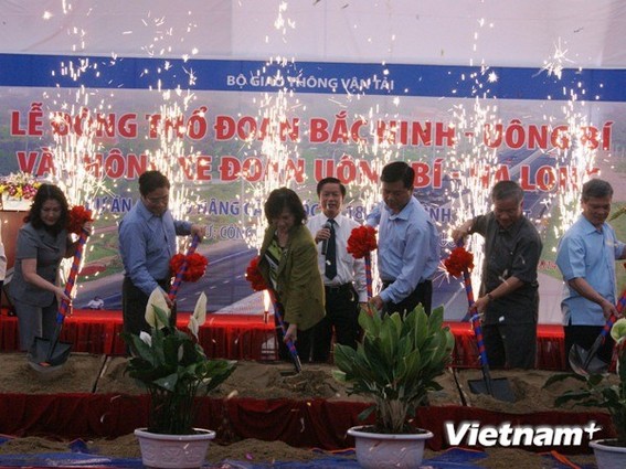 Các đại biểu động thổ đoạn Bắc Ninh-Uông Bí của Quốc lộ 18. (Ảnh: Việt Hùng/Vietnam+)