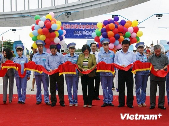 Cắt băng khánh thành để đưa vào khai thác đoạn Hạ Long-Uông bí thuộc dự án Quốc lộ 18. (Ảnh: Việt Hùng/Vietnam+)
