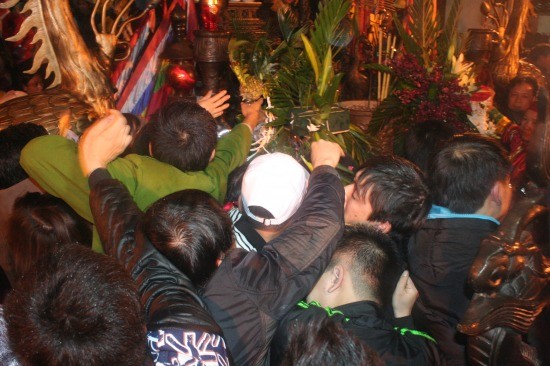 Theo ghi nhận của PV, mặc dù lực lượng an ninh đã làm việc rất tích cực, nhưng vẫn không thể ngăn được dòng người tràn vào. Hậu quả khiến cho một chiếc lư hương nhỏ bị đổ xuống, rất may không ai bị đè vào chân.