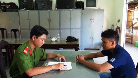 Nguyễn Nghĩa tại cơ quan điều tra. (Ảnh Công an cung cấp)