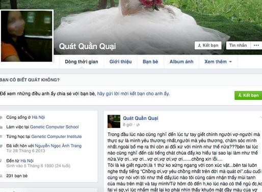 Vài ngày trước khi ra đầu thú, Quát đã lên facebook ghi rõ về sự ân hận của mình, đặc biệt status được viết trưa ngày 23/12 có ghi rõ về vụ án mạng. Quát viết: “Trong đầu lúc nào cũng nghĩ đến lúc tự tay giết chính người vợ - người mà thực sự là mình yêu thương nhất, người mà yêu thương, chăm sóc mình nhất. Ngoài bố mẹ ra thì còn ai đối xử với mình như thế nữa?.”