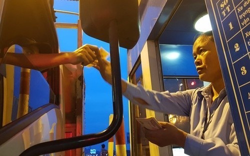 Người dân dùng tiền lẻ trả phí tại trạm BOT quốc lộ 5.