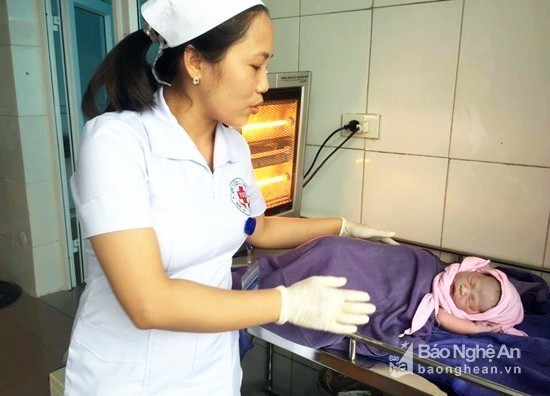 Em bé được đưa lên phòng sinh để sưới và chăm sóc. Ảnh: BVĐK 115 NA cung cấp