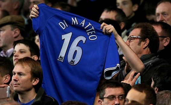 CĐV giơ cao áo đấu của Di Matteo trên khán đài Stamford Bridge - Ảnh: Getty