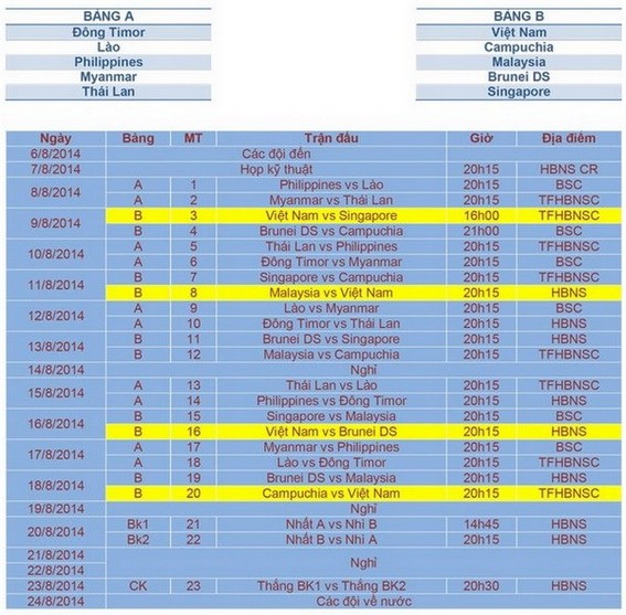 Cũng trong ngày hôm qua, lịch thi đấu giải Hassanal Bolkihah 2014 đã được công bố. U19 Việt Nam sẽ ra quân ngày 9/8 với đối thủ đầu tiên là Singapore. Đây là đội bóng mà U19 Việt Nam chưa từng đối mặt. Ở giải U19 Đông Nam Á năm ngoái, U19 Singapore có thành tích rất tệ khi chỉ xếp hạng 4/5 ở bảng A, bị loại sau vòng bảng.