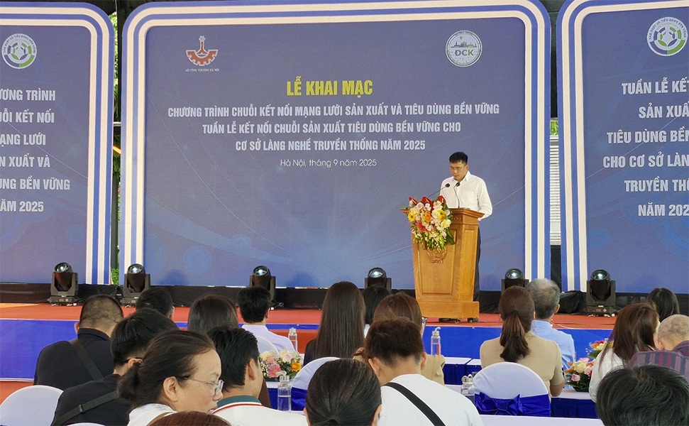 Ngày 12/9, tại Trung tâm thương mại The Linc (Khu đô thị ParkCity Hanoi, đường Lê Trọng Tấn, phường Dương Nội, Hà Nội), Chương trình chuỗi kết nối “Mạng lưới sản xuất và tiêu dùng bền vững” cùng Tuần lễ kết nối chuỗi sản xuất – tiêu dùng bền vững cho cơ sở làng nghề truyền thống năm 2025 đã chính thức khai mạc, mở ra không gian giao thương, quảng bá và thúc đẩy phát triển nông sản, sản phẩm làng nghề theo hướng xanh, an toàn và trách nhiệm.