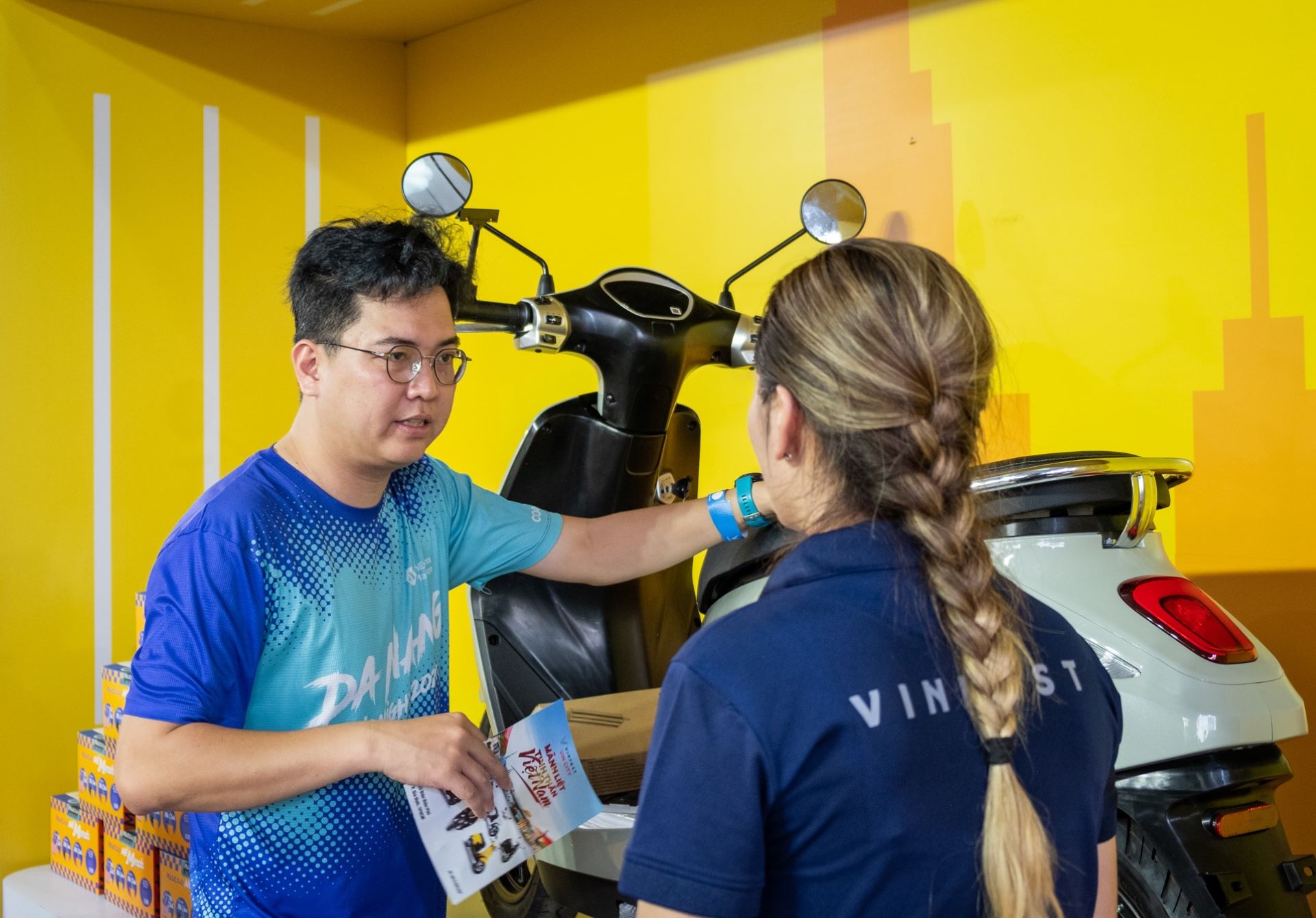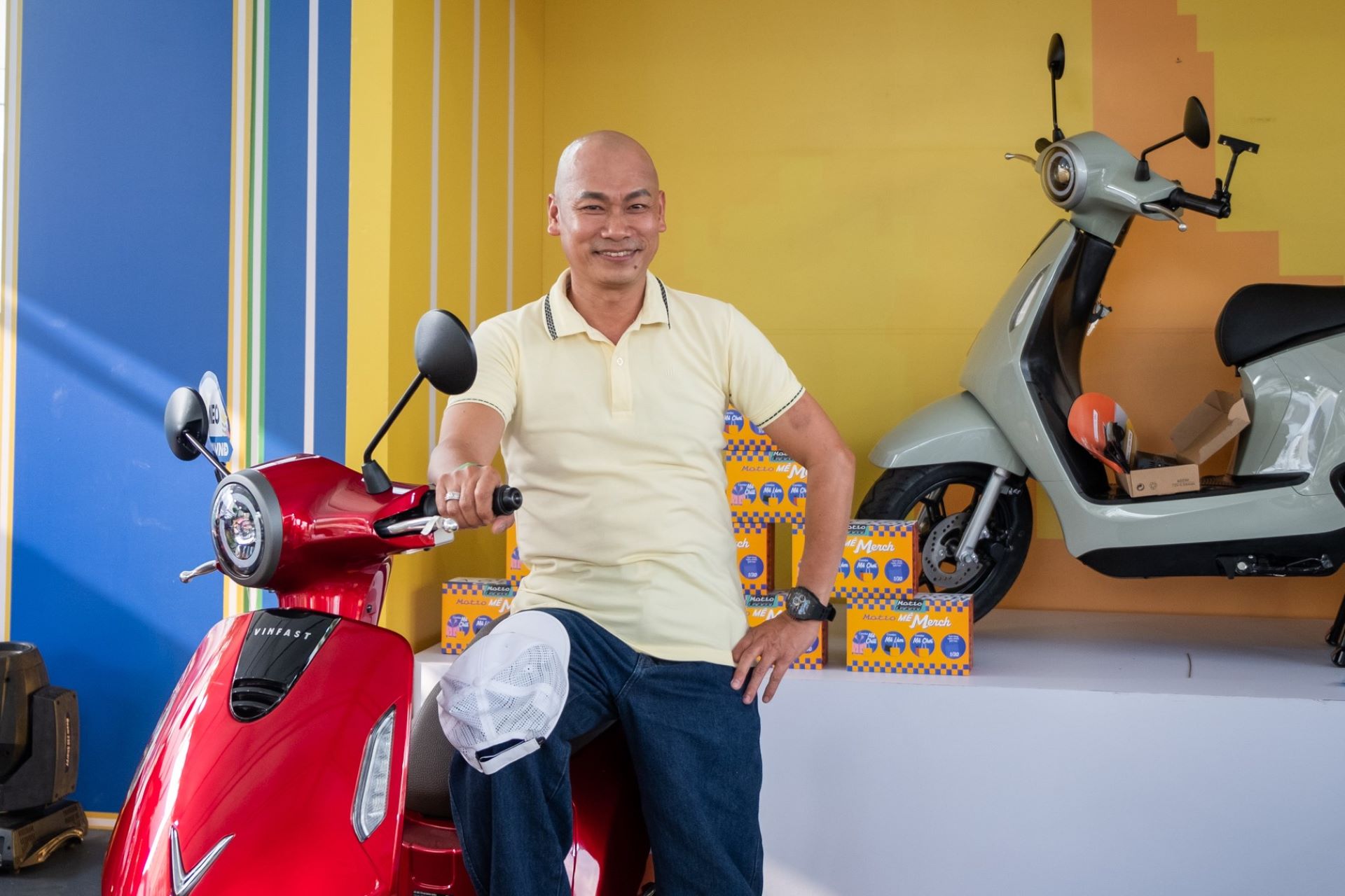 Anh Lê Văn Thịnh, chủ một doanh nghiệp hoạt động trong các lĩnh vực may mặc, bất động sản, dược phẩm và mỹ phẩm tại TP. HCM, đến sự kiện “Đổi xăng lấy điện” cùng đội ngũ nhân viên để khuyến khích nhân viên trong công ty chuyển đổi xanh. Bản thân anh Thịnh cũng là người yêu xe điện, đang sở hữu hai mẫu ô tô điện VF 7 và VF 9 để đi lại hàng ngày. Anh chọn lái thử Klara Neo, Vento Neo, VF Drgnfly.