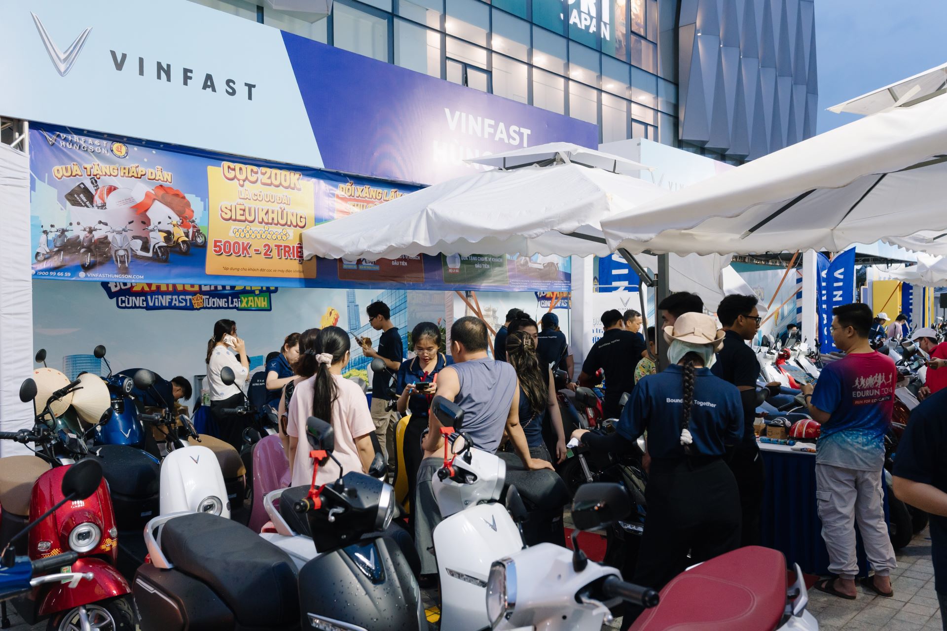 Tại điểm cầu TP.HCM, không khí bắt đầu nhộn nhịp từ sáng sớm ngày 2/8. Như thường lệ, khu vực tập trung đông người nhất tại sự kiện vẫn là gian hàng của các đại lý, nơi khách hàng có thể tìm hiểu về các mẫu xe và quy trình chuyển đổi. Các mẫu xe thu hút sự chú ý của khách hàng có thể kể đến VinFast Motio, Evo Neo, Feliz Neo, Vento Neo...