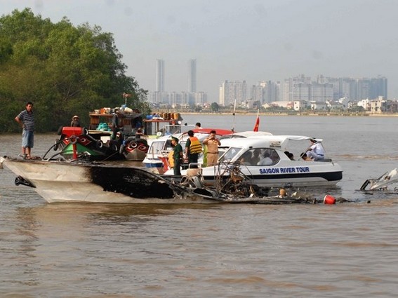 Ảnh: Hiện trường vụ tai nạn tàu cao tốc cánh ngầm ở Thành phố Hồ Chí Minh. (Ảnh: Mạnh Linh/TTXVN)