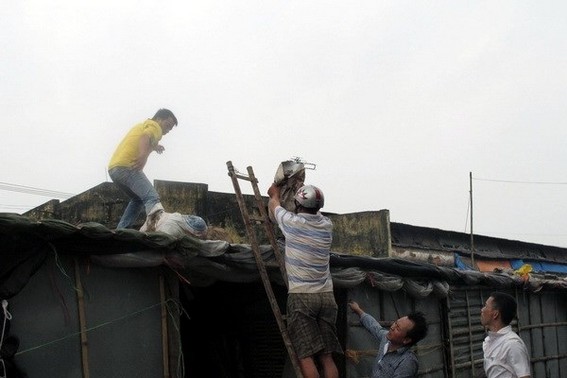 Chằng chống nhà cửa phòng chống bão. (Ảnh: Văn Đạt/TTXVN)