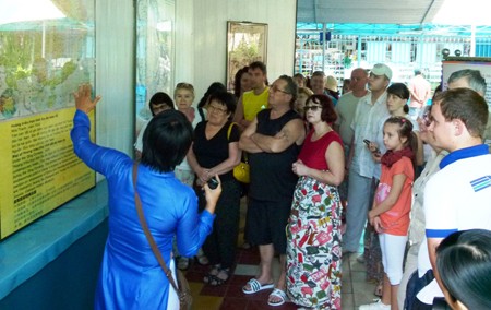 Du khách xem bản đồ tư liệu về Hoàng Sa và Trường Sa tại Viện Hải dương học Nha Trang.