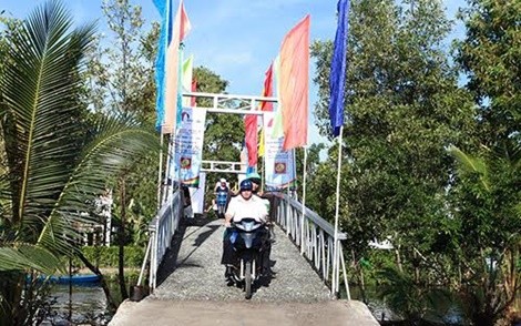Bà con xã Tân Lộc đi qua chiếc cầu Dr Thanh – Cựa Gà mới khánh thành