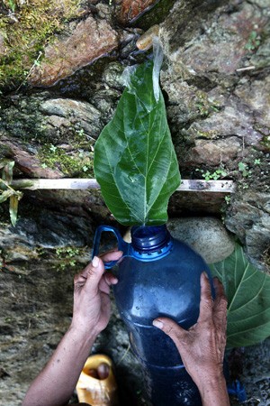 Nước lấy từ mạch rỉ ra nơi khe đá.