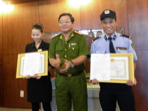 Lãnh đạo công an TP Đà Nẵng tặng bằng khen cho nhân viên và bảo vệ công ty Indochina