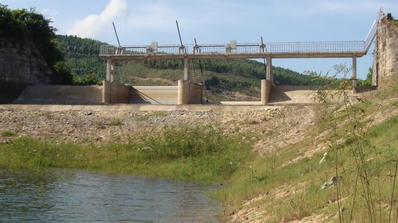 Ở hồ chứa nước Liệt Sơn (Quảng Ngãi), lượng nước tích được chưa đến tràn.