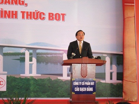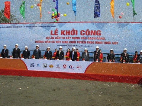 (ĐS&TD) - Sáng 25/01/2015, tại thị xã Quảng Yên, Quảng Ninh, Phó Thủ tướng Chính phủ Hoàng Trung Hải đã phát lệnh khởi công Dự án cầu Bạch Đằng, đường dẫn và nút giao cuối tuyến theo hình thức BOT.
