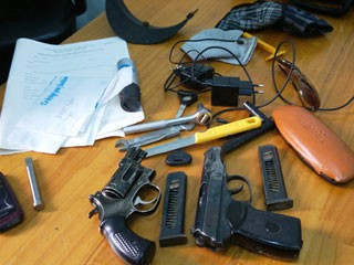 Được biết, qua khám xét xe và túi xách của nghi can bỏ lại hiện trường, Công an TP.Cà Mau đã thu giữ 1 khẩu súng K59 có 6 viên đạn, trong đó có 1 viên đã lên nòng, 2 băng tiếp đạn; 1 khẩu súng rulo bắn đạn cao su nhưng được tiếp 3 viên đạn thật vào và nhiều dụng cụ dùng để mở khóa xe…