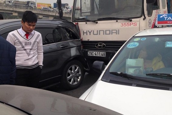Vụ tại nạn giao thông sáng 25/12 khiến 6 ô tô “dồn toa” tại nút giao cầu Thanh Trì - Quốc lộ 5 (Sài Đồng, Gia Lâm, Hà Nội). Ảnh: TL