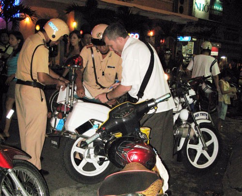 CSGT xử phạt người nước ngoài không có giấy phép lái xe - Ảnh: Đàm Huy