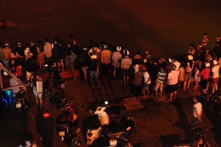 Vụ việc đã thu hút hàng trăm người hiếu kỳ đứng trên cầu sông Hàn và dưới chân cầu xem.