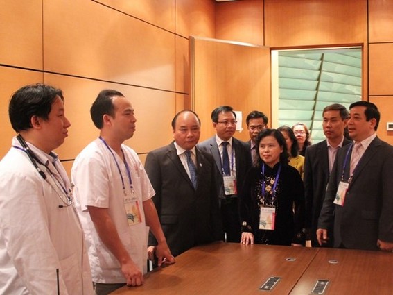 Phó Thủ tướng Chính phủ Nguyễn Xuân Phúc trực tiếp kiểm tra công tác thường trực cấp cứu phục vụ Đại hội. (Nguồn: Bộ Y tế)