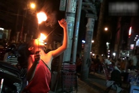 Nuốt dao lam, thổi lửa, hát rong để bán kẹo kéo, xin tiền boa là những chiêu trò một thời khuấy động các vỉa hè ăn nhậu tại Sài Gòn. Có lẽ đến thời điểm này những chiêu trò đó đã hết thời, hầu như dân nhậu chẳng còn quan tâm ngước mắt lên nhìn...