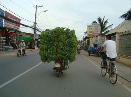 Chở rau muống vào nội thành tiêu thụ. Ảnh T.H
