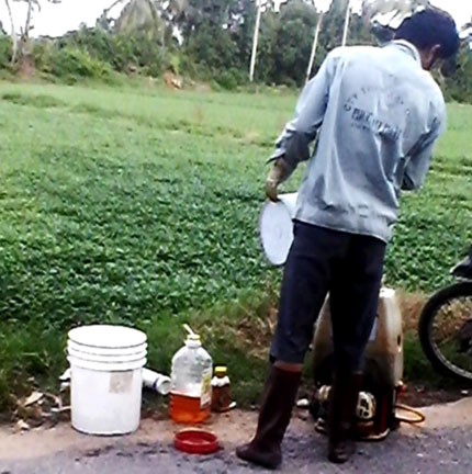 Pha chế để chuẩn bị phun thuốc cho rau muống.