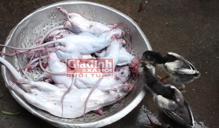 Sau tiếng “bịch” khô khốc, ba con chuột đang mang thai bị ném thẳng vào chậu nước nóng, cạo lông sạch sẽ. Trên tay lăm lăm con dao bén nhọn, người chủ hàng rạch thẳng một đường từ bụng chuột “bầu” xuống hậu môn, lôi đám chuột bào thai (chuột bao tử - PV) còn đỏ hỏn ra ngoài. Một tay gạt bỏ mớ bùng nhùng còn dính, một tay người này ném đám chuột bao tử vào nồi nước sôi sung sục đã được nêm gia vị. Sau chừng một phút vớt ra, những bào thai chuột kinh dị ấy sẽ trở thành món ăn tươi sống “thượng hạng”, phục vụ nhu cầu thưởng thức “của lạ” để tăng cường sinh lực của các “quý ông” có nhu cầu…