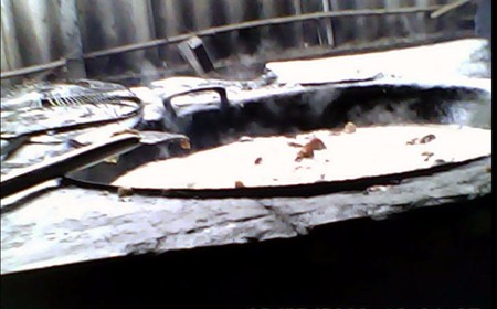Vừa đến ngõ nhà ông Ty, chúng tôi đã sởn da gà bởi mùi thối tựa mùi của xác động vật đang phân hủy bốc lên. Sau khi đặt vấn đề mua bán, chúng tôi được vợ ông Ty dẫn đi xem quy trình chế biến mỡ bò. Lò chế biến mỡ này được đặt trong cái chòi xập xệ, nằm sát đường đi. Hàng tạ mỡ bò đã bốc mùi hôi thối được đổ ngổn ngang giữa sàn nhà lấm lem bùn đất, ruồi nhặng bu kín. Cạnh đống mỡ là những bao nylon cỡ lớn đựng mỡ lỏng vứt lăn lóc khắp nơi. Phía trong là 2 chảo rán mỡ đang sôi sùng sục cạnh hồ nước đen ngòm, bốc mùi tanh tưởi.