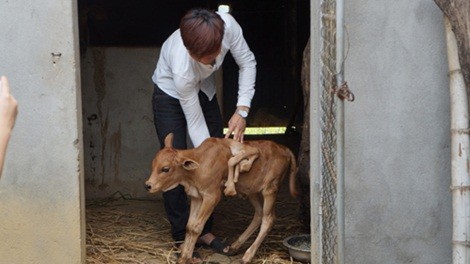 Khác với những con bê bình thường, khi được sinh ra con bê cái của gia đình ông Thông có đến 7 chiếc chân. Ngoài 4 chiếc chân bình thường thì 3 chiếc chân còn lại được mọc ở một bên thân của con bê.