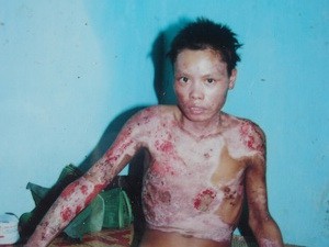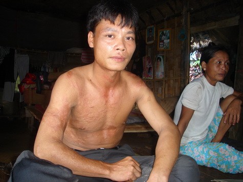 Khi chúng tôi hỏi đến nhà anh Bùi Văn Hiệu thì ở xóm Nội Xung xã Hạ Bì huyện Kim Bôi, ai cũng biết. Cách đây vài năm nghe thông báo cột điện 35kv đã ngắt điện, anh Hiệu bèn trèo lên cột điện để bắt sáo. Không ngờ anh trèo “nhầm” lên cột có điện, bị điện giật dính luôn trên cột. May sao gần đó có mấy người thợ điện đang sửa đường dây, thấy vậy liền báo cắt cầu dao điện. Lúc đưa anh xuống thì toàn bộ cơ thể anh đã bị điện giật cháy xám. Anh Hiệu kể: Lúc đó cả người tôi chỉ còn mỗi chỗ bụng là không bị cháy xám. Mọi người đưa tôi đi cấp cứu ở bệnh viện Đa khoa tỉnh. Thấy bỏng nặng quá, bệnh viện không có điều kiện chữa nên các bác sĩ khuyên gia đình tôi chuyển tôi đi Viện bỏng Quốc gia. Sau 1 tháng 2 ngày mặc dù được các bác sĩ hết sức chữa trị, nhưng do vết thương quá nặng đã bị nhiễm trùng, không thể chữa trị được nữa nên gia đình tôi đã đưa tôi về nhà. Bố mẹ tôi đã phải bán đất, vay mượn anh em để trả chi phí tiền thuốc chữa trị cho tôi (trên 30 triệu đồng). Khi về nhà, biết tôi khó qua khỏi, gia đình cũng đã chuẩn bị hậu sự cho tôi.