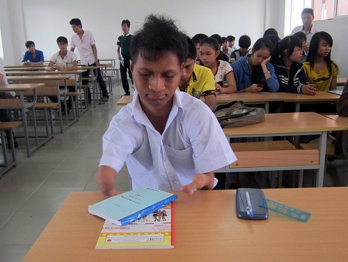 Không may mắn như những đứa trẻ khác, sinh ra, cậu bé Nay Djruêng (dân tộc Jrai, buôn Ji A, xã Krông Năng, huyện Krông Pa, Gia Lai) đã bị dị tật vì di chứng chất độc da cam.