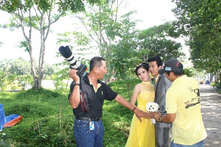 Câu chuyện đang “mặn” thì vừa lúc hai nhiếp ảnh gia Võ Thơ và Trúc Minh Kiếm đưa các cô dâu chú rể đến nghĩa trang liệt sĩ chụp hình cưới. Trong khi chờ các cặp đôi thay đổi xiêm y, chúng tôi tranh thủ bắt chuyện thì Võ Thơ bảo hồi đầu thuyết phục cô dâu chú rể vào nghĩa trang chụp hình cưới cũng khó lắm chứ không dễ dàng như bây giờ. “Rõ ràng là thời điểm năm 1993 – 1994, cảnh quan ở nghĩa trang là đẹp nhất tỉnh rồi nên thuyết phục cô dâu chú rể vào đây là có cơ sở chuyên môn mà nói chuyện, duy chỉ vướng vấn đề tâm linh khiến nhiều người e ngại. Lúc đó anh em cũng “học bài” của anh Duy Anh thuyết phục các cặp đôi rằng chụp hình rất đẹp mà không có mộ phần trong hình bằng cách đưa cả album ảnh ra thuyết phục. Vả lại mộ phần là của những anh hùng liệt sĩ sống khôn thác thiêng, vào đấy thắp nhang nguyện xin tình duyên bền chặt là chuyện rất hay. Nói có tình, có lý, thế thì họ cũng xuôi tai. Nhiều người vào đây chụp, riết rồi người ta quen”. Thậm chí, nhiếp ảnh gia Võ Thơ còn quả quyết: “Nhiều cặp đôi sống hạnh phúc đến hôm nay còn vào đây thắp nhang cho các anh hùng liệt sĩ đã mang đến nhiều cái phúc trong cuộc sống hôn nhân cho họ đấy”!