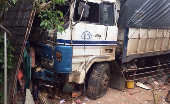 Đang lưu thông trên đường, xe tải bất ngờ lạc tay lái, đâm sập nhà dân ven đường.
