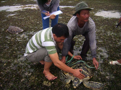 Thả đồi mồi về Vườn Quốc gia Núi Chúa, tỉnh Ninh Thuận. Ảnh: THÀNH ĐỒNG