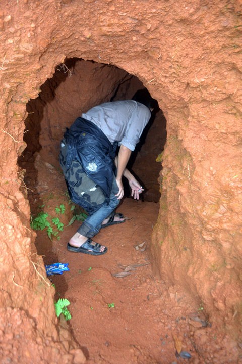Ngày 27/12, khu vực núi Cấm có trên 10 hầm khai thác vàng nằm san sát nhau, miệng hầm có đường kính 1-2 m, khoét sâu dưới lòng đất 10 m, nhiều hầm sâu đến 20 m. Trong đó có nhiều hầm đã cũ, nhưng cũng có hầm mới được đào lên để khai thác. Xung quanh những hầm này có nhiều đống đất, đá còn mới do phu vàng đào lên để đãi vàng. Nhiều dụng cụ để đào, đãi vàng như cuốc, xẻng, máng gỗ... do các phu vàng bỏ lại nằm vương vãi. Các hầm khai thác vàng này chỉ được đào thủ công, ít có cọc gỗ chống đỡ, trên miệng hầm chỉ có những chiếc cọc tre đã mục nát để phu vàng vịn vào đó xuống đáy đãi vàng. Hiểm họa sập hầm luôn treo trên đầu những phu vàng.