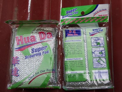 Đây là miếng rửa chén bát do chị Lê Thi Thọ mua tại chợ Đà Lạt cách nay vài hôm, có nhãn hiệu “Hua Da” nhưng không rõ xuất xứ, nguồn gốc.