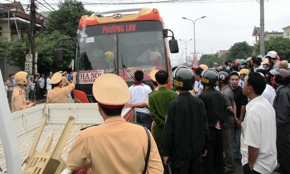 Hàng chục chiến sĩ công an chặn xe khách, đồng thời yêu cầu lái xe mở cửa, xuống xuất trình giấy tờ nhưng lái xe không chấp hành. Hơn 35 hành khách trên xe nhốn nháo, lo lắng, có người chịu không nổi sự ngột ngạt trong xe đã đập cửa kính thoát ra ngoài.