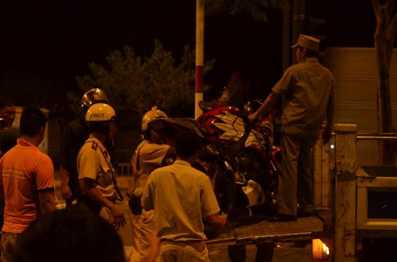 Đến gần 23h cùng ngày, CSGT đành chấp nhận không đưa xe mô tô phân khối lớn lên xe tải chuyên dụng mà để cho một thanh niên khác lái xe đi.