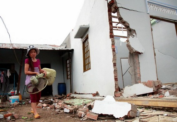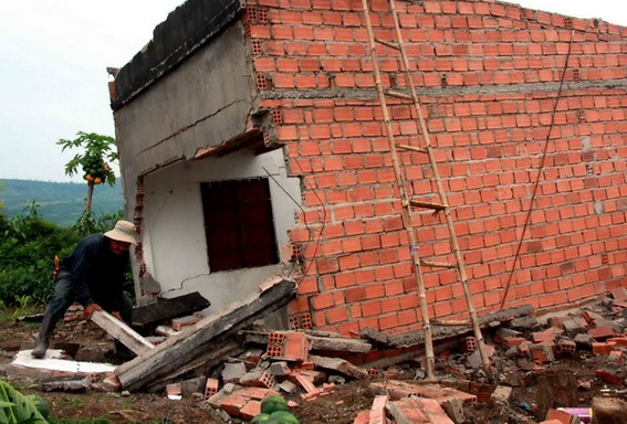 Ông Sản kể lại: “Tối mùng 9 cả nhà tôi đang ngủ thì nghe như có tiếng nổ trong lòng đất, sáng ra thì thấy vách tường xuất hiện các vết nứt kéo dài, gạch men trên nền nhà bị đất đẩy lên vỡ vụn. Do sợ nhà bị sập nên tôi đã chuyển đồ đạc ra ngoài và đưa cả gia đình đi ở nhờ nhà người khác.”