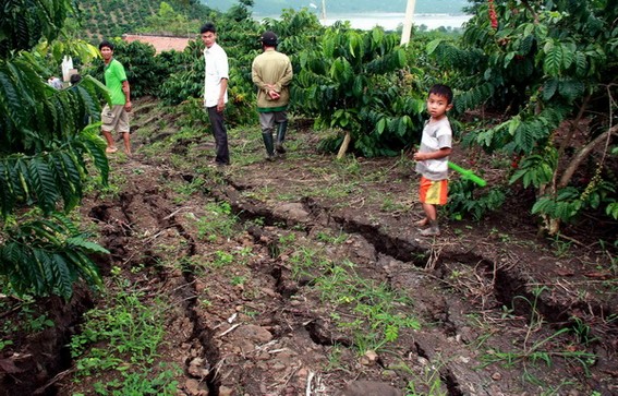 Chị Điểu Thị Ngọc Uyên, cho biết: “Cách đây mấy ngày khi cả nhà tôi đang ngủ thì nghe tiếng nổ lách tách trong lòng đất. Buổi sáng dậy mới phát hiện trên tường có nhiều vết nứt, nền nhà trồi sụt bất thường nên không dám ở nữa, vội chuyển đồ đạc đi ở nhờ. Không những trong nhà mà ngoài sân, vườn càphê của gia đình tôi cũng xuất hiện rất nhiều vết nứt kéo dài, kéo cây càphê đổ nghiêng ngả.”